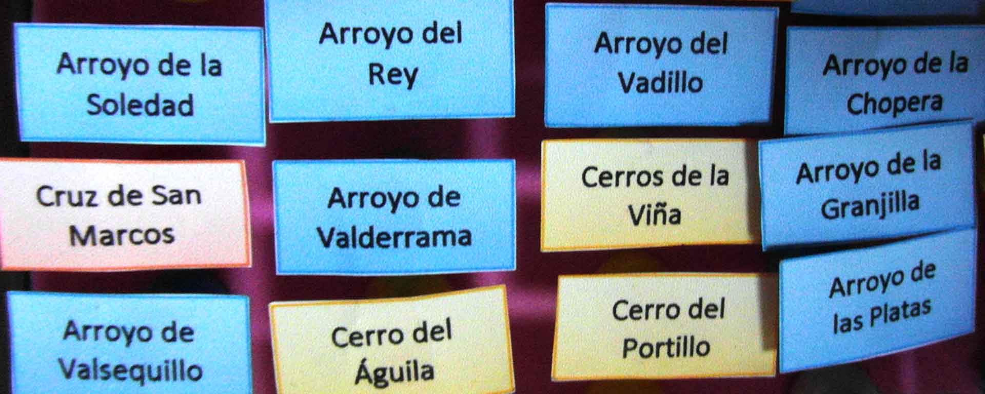 (6) El ROBLE como consecuencia de las originarias plantaciones en la margen del arroyo de los Meaques genera seis topónimos; el Arroyo del Robledal, el Camino del Robledal, el Puente del Robledal, la Puerta del Robledal, el Paseo de los Robles y el Paseo del Paso de los Robles