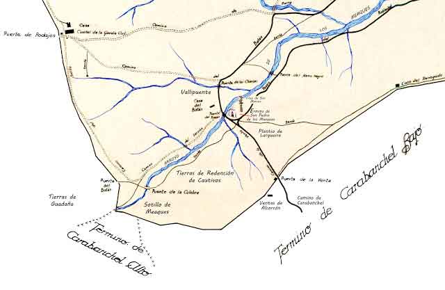 Tiene sentido que, si el Arroyo de los Meaques nacía en lo que ahora conocemos como la Venta de La Rubia, aunque se ha ido acortando su origen en parte por la construcción de la M-40 y ahora está en los Retamares, no alcanzaría suficiente caudal hasta varios kilómetros más abajo cuando se le sumaban varios afluentes importantes como los arroyos de Retamares, Charcón, Valchico. Esto lleva a pensar que los asentamientos en el Arroyo de los Meaques, tanto romanos como los posteriores, se dieran en las proximidades o en lo que hoy es la Casa de Campo, cuando ya el caudal del arroyo fuera el necesario para el abastecimiento, el riego y su fuerza pudiera mover molinos y batanes, lo que nos hace pensar que más o menos correspondería con la Vereda de Oro cercana al Puente de la Culebra.