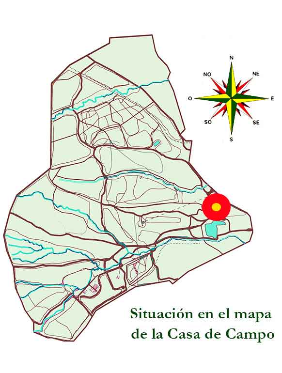 VER SITUACIÓN EN Google Maps UTM 30T 437970.33 m E – 4474865.06 m N. En el Paseo del Piñonero es la segunda fuente que nos encontramos a mano izquierda desde El Lago,