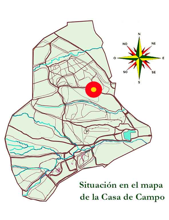Situada en un lugar apartado de la Casa de Campo, hay que buscarla, ya que el abandono la hace pasar desapercibida en la margen derecha del Arroyo de Cobatillas, seco durante todo el año.