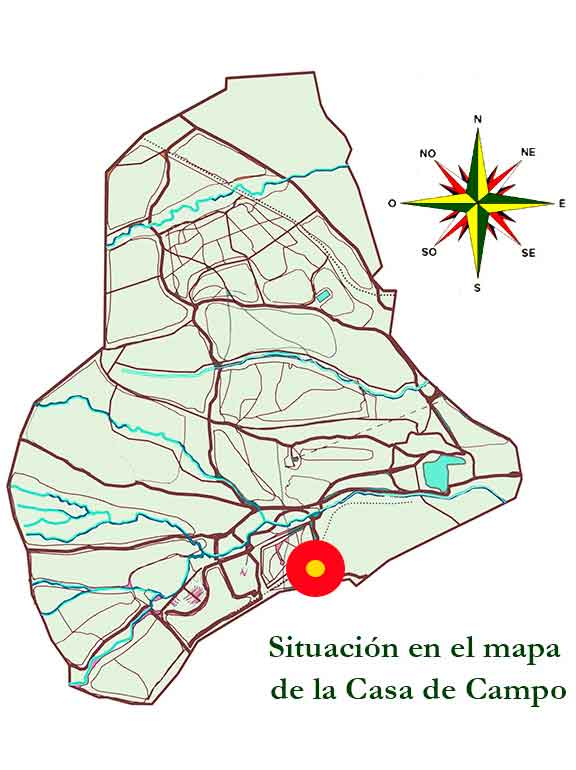 Se encuentra sobre un montículo desde el que se divisaba en todas las direcciones la parte este de la Casa de Campo, formaba parte de un proyecto de zona de recreo que no llegó a realizarse en su totalidad por culpa de la Guerra Civil de 1936-39, el proyectó iba unido a la nueva Puerta del Término y al Colegio Pedro Atienza.