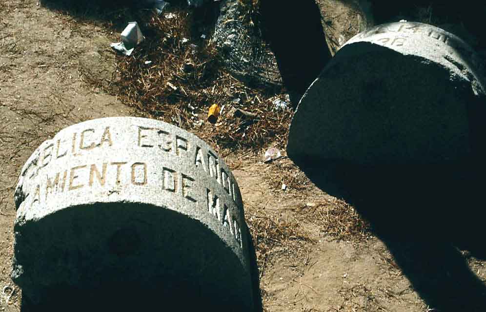 En el círculo central se hallaba pilastra circular de dos piezas -desaparecidas en los años ochenta- también de granito y en la que se leía en una Fuente del 14 de Abril de 1936 y en otra República Española Ayuntamiento de Madrid.