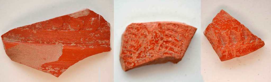 Infinidad de materiales de cerámica o barro perteneciente a la época de los romanos. Tenemos muestras de cerámica primitiva y terra sigillata abundante lo que indica su antigüedad.