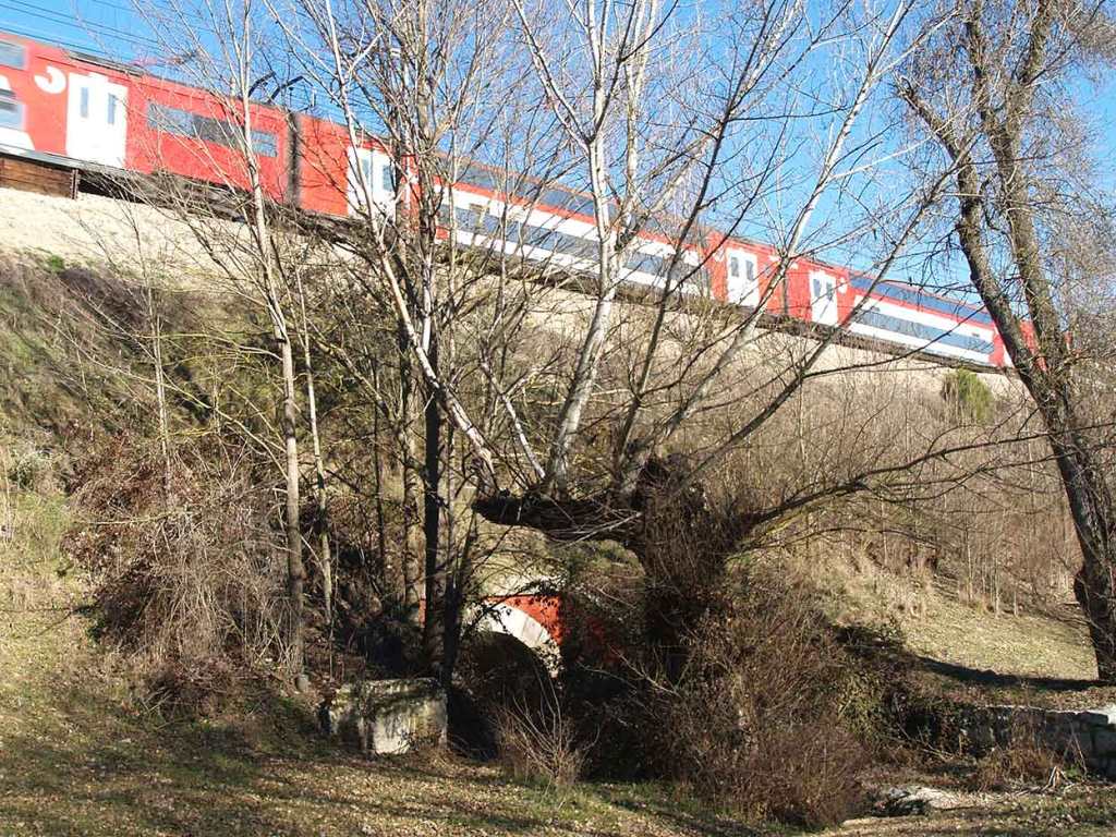 VER SITUACIÓN EN Google Maps UTM 435867.01 m E – 4477185.86 m N. Atraviesa las vías del Tren del Norte en el Camino de Moscatelar cuando se cruza con el Arroyo de Antequina.