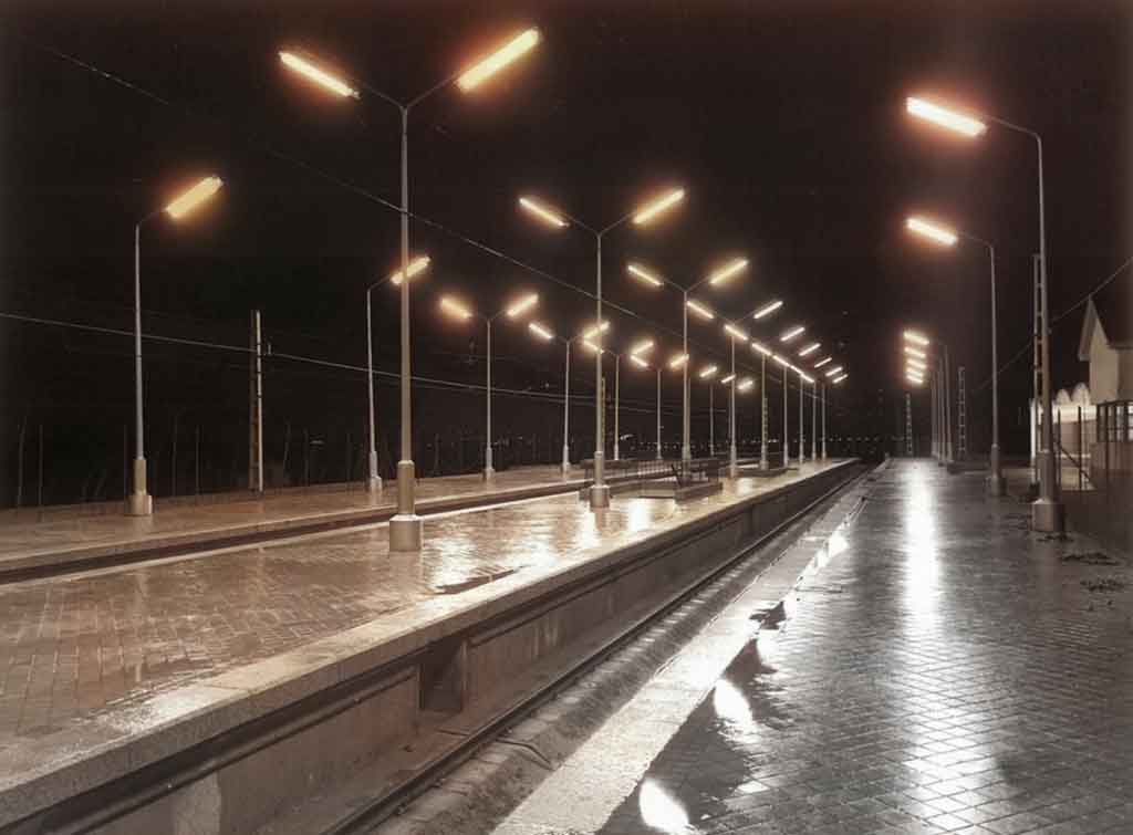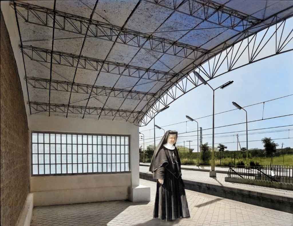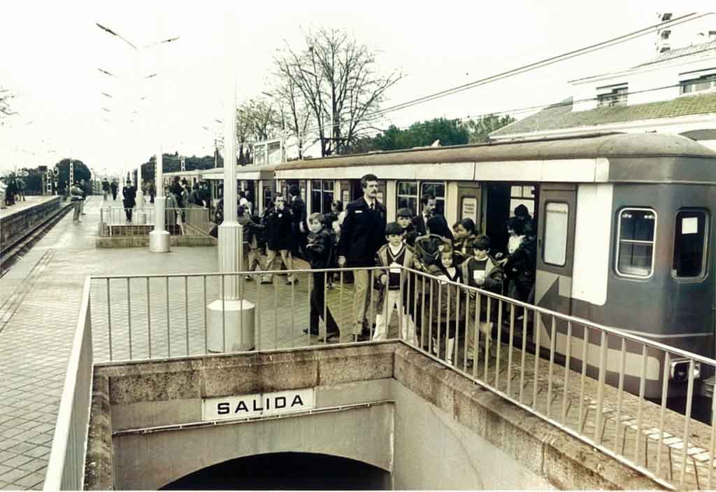 | Estación de El Batán recién inaugurada donde se ve la escalerilla para cruzar la vía. |