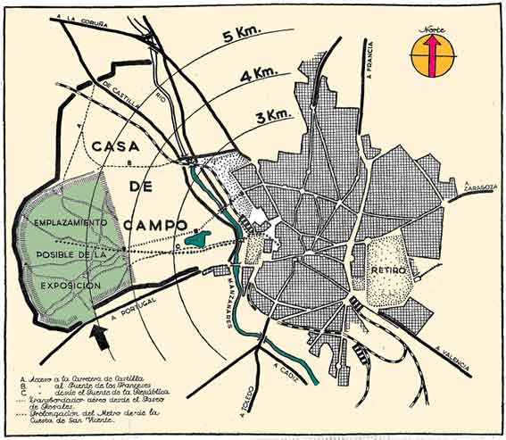 | Línea de Metro en el Plano del Proyecto de Exposición Universal 1935. |