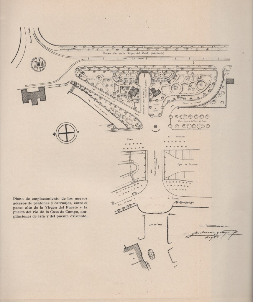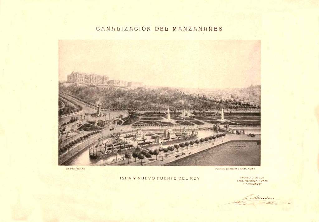 Proyecto de regularización, canalización y saneamiento del río Manzanares 1909. Con proyecto de los ingenieros Carlos Mendoza Sáez de Argandoña, Dámaso Torán y Luis Harguindey. Donde se proyectaba hacer un puente nuevo.