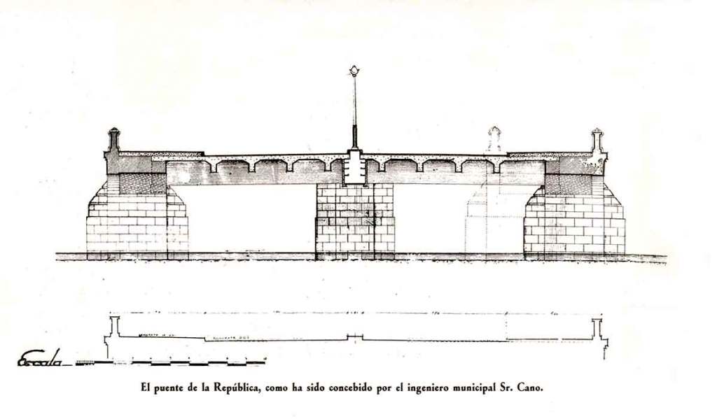 El viernes 9 de marzo de 1934 se aprueba un proyecto de 461.000 pesetas para ensanchar hasta 25 metros el Puente de la República (antes del Rey), cuya anchura ahora era de cuatro metros.