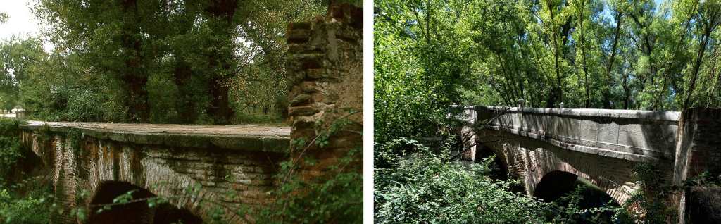 Como se aprecia, se tuvo en cuenta que los desperfectos del paso del ganado se producían tanto en el suelo como en su parte superior, de ahí que se construyera en granito, frente a sus arcos y tajamares que son de ladrillo.