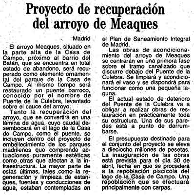 Desde él se accedía a los ejidos de Carabanchel, Aluche y Meaques que eran prados de “bocado” y a los prados protegidos de «guadaña», como se conocían los más próximos al Arroyo de los Meaques, de ahí que el arroyo recibiera también el nombre de Arroyo de la Guadaña.