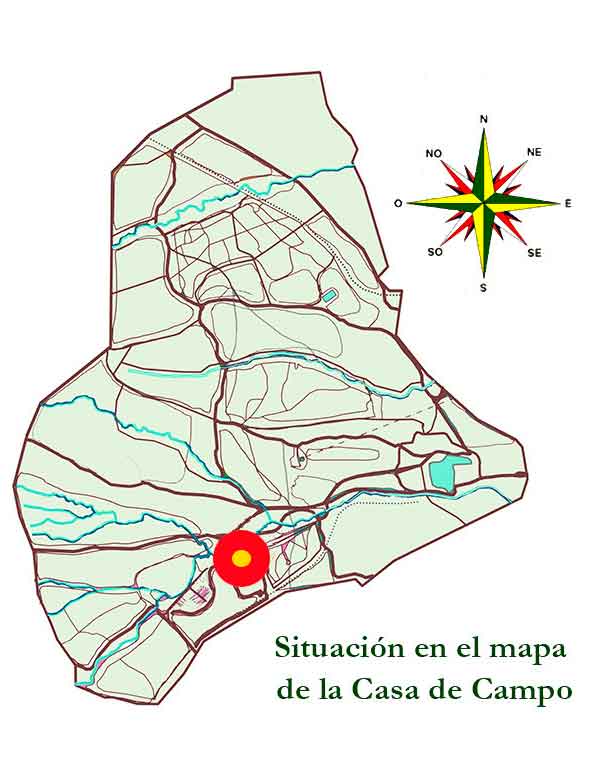 VER SITUACIÓN EN Google Maps UTM 436004.63 m E – 4473613.37 m N. Al lado de la estación de Metro de El Batán en su salida al Parque de Atracciones. Aunque su entrada principal está en la Glorieta de la Venta de El Batán.