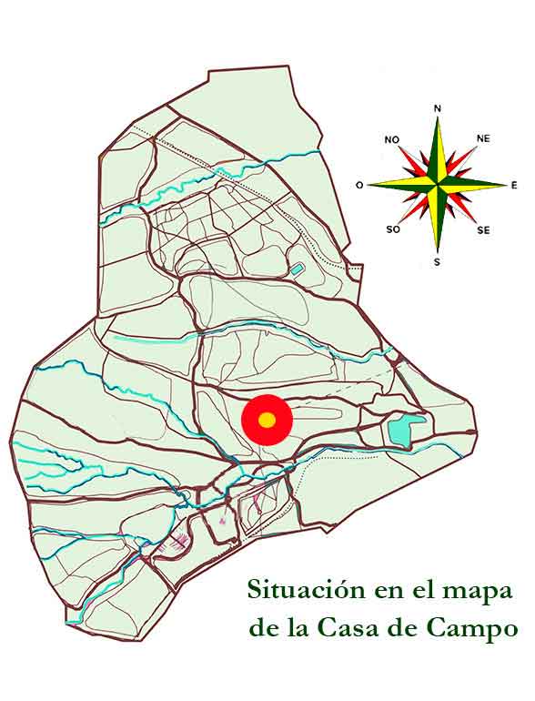 VER SITUACIÓN EN Google Maps UTM 436439.00 m E – 4474615.65 m N. Termina en el Cerros de las Olivas de la Casa de Campo y comienza en el Paseo del Pintor Rosales.
