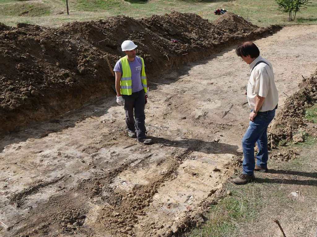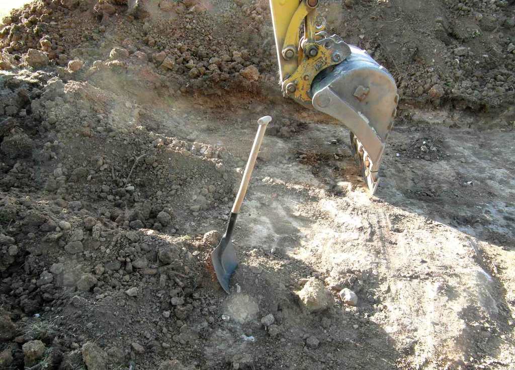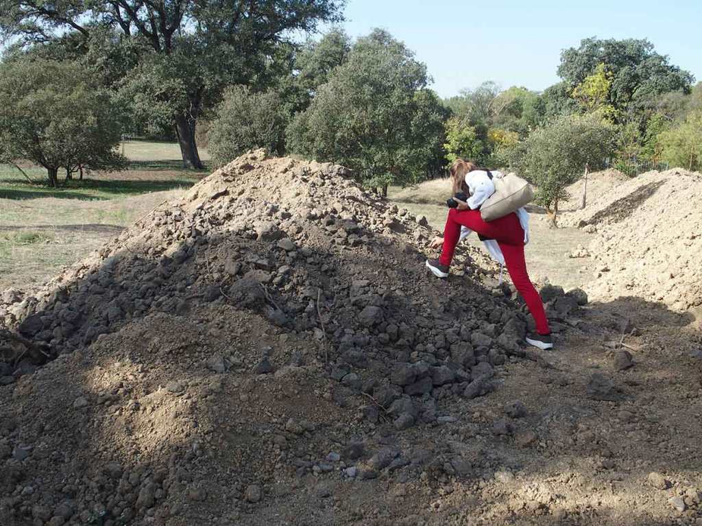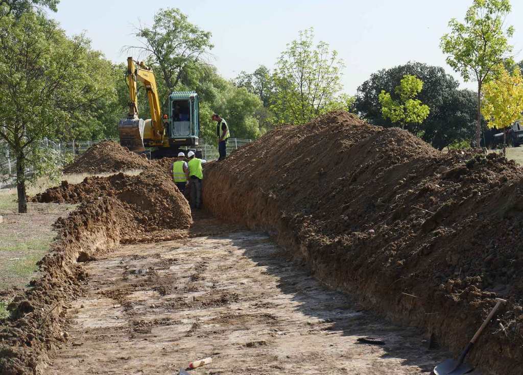 Cuando llegamos a las nueve de la mañana la excavadora ya había abierto una zanja de 3 m de ancho y una profundidad de 0,50 m. A esta tarea se la denomina “rascado del terreno”.