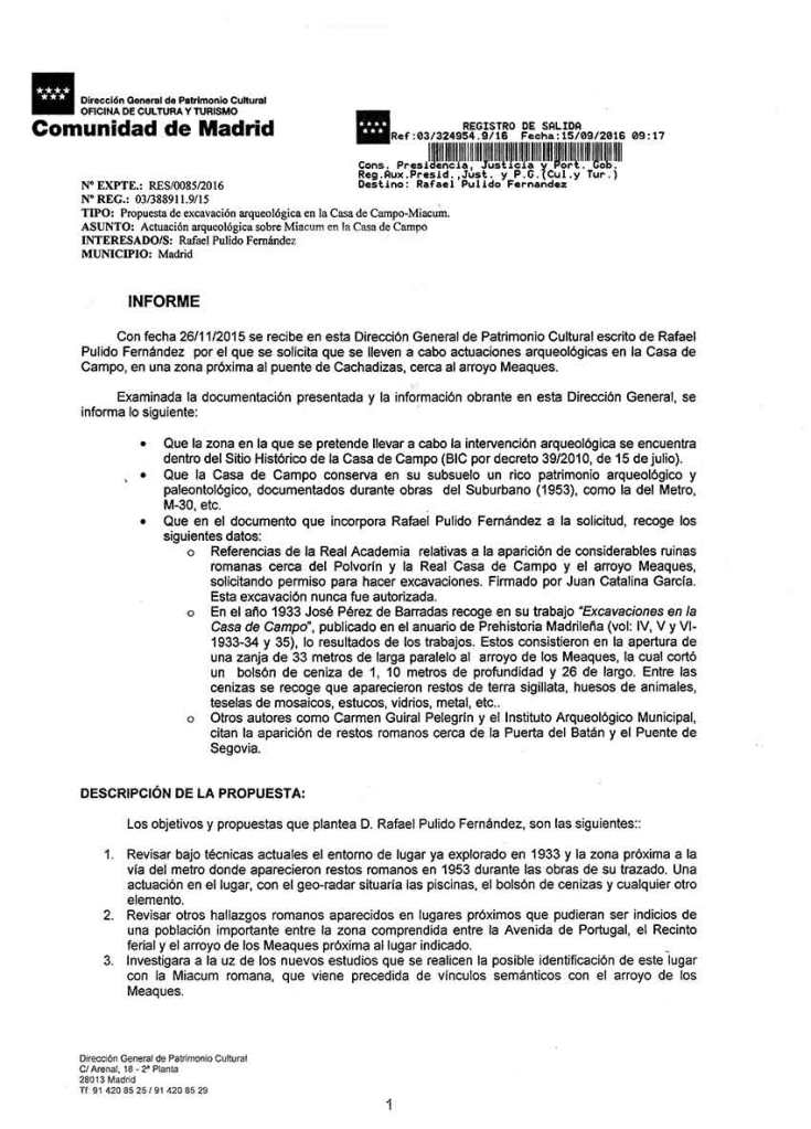 Un informe muy deficiente en el que solo la toponimia de los puentes entre los que sitúa la excavación sirvió para localizar la zona, ahora 86 años después de aquel infructuoso intento de encontrar una villa romana en la Casa de Campo, se reanuda la búsqueda con los medios modernos de localización.