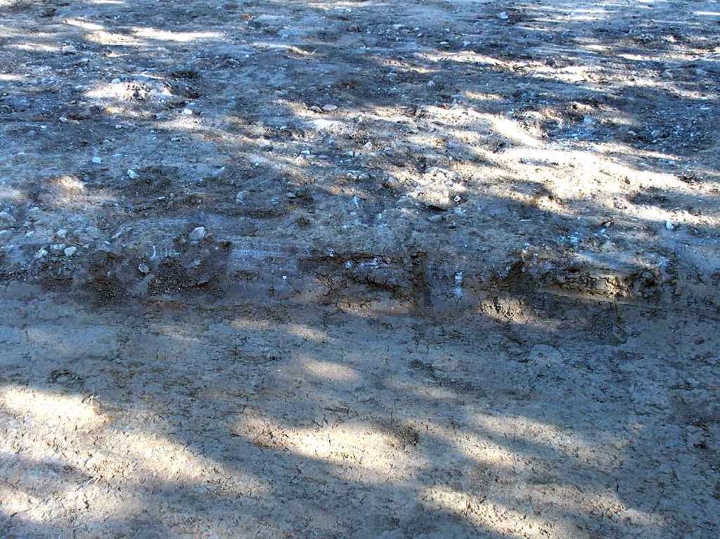 A noventa metros y a escasos 20 o 30 cm del nivel superficial, surge un suelo de piedra de 9 metros por 7; cantos rodados con argamasa de cal, los expertos lo consideran una entrada a una casa romana, llama la atención que en el centro de la solera hay un impacto de bomba de la Guerra Civil 1936-39, aún está la espoleta y restos de metralla.