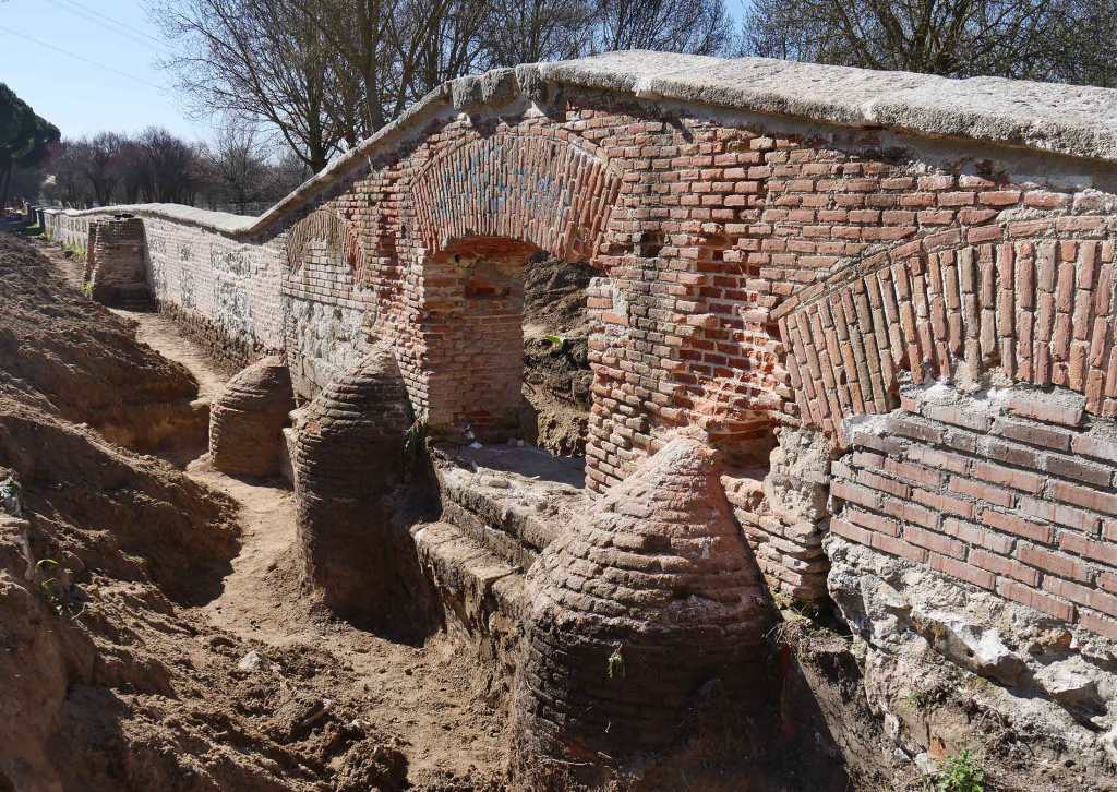 Esta reja se debe al maestro de obras Gerónimo de Albaro en 1766. Construidas con arcos en ladrillo rojizo. De los arcos sólo se ve la parte superior, ya que el terreno ha subido de nivel cerca de un metro. En este lugar precisamente la tapia original cedió al poco tiempo de construirse, posiblemente fue entonces cuando se ampliaron el número de arcos y el grosor de la tapia.