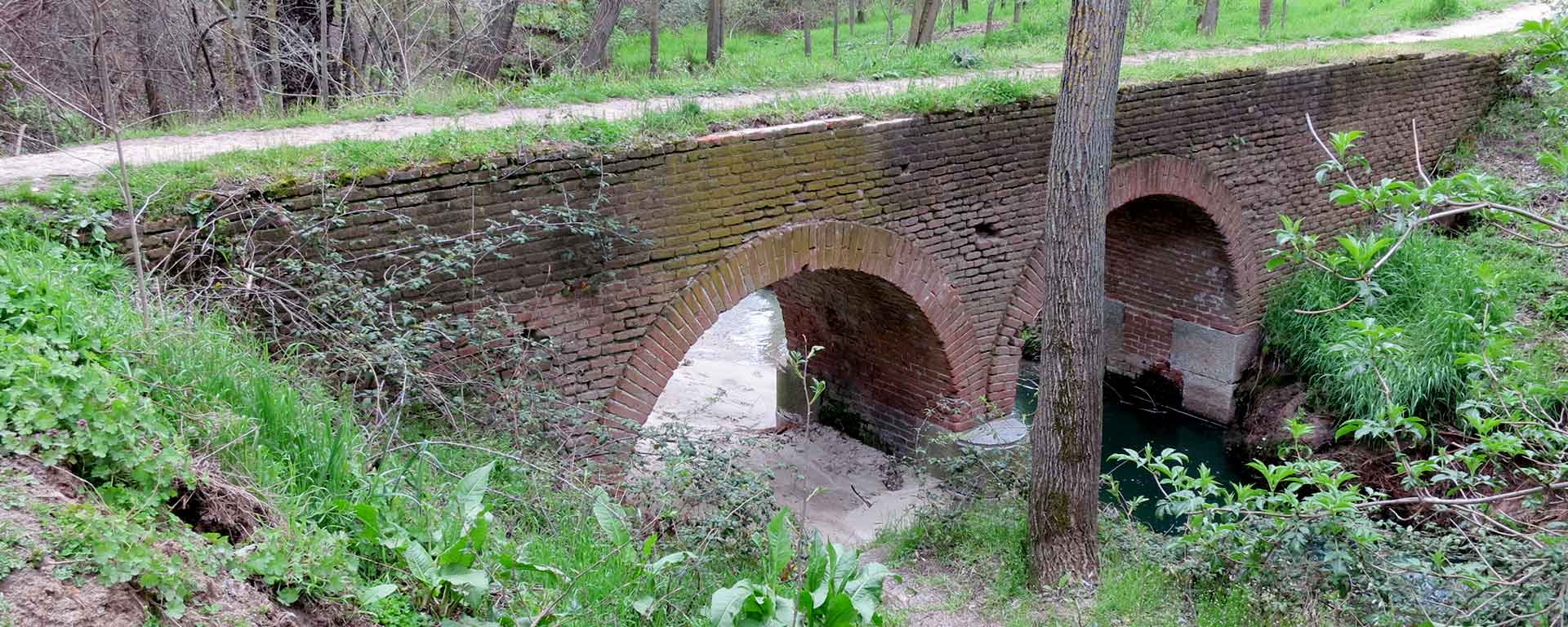 Las obras de la Cacera Norte realizada a partir de 1879 obligaron a construir varios acueductos. Este es obra de José Pérez y Sanjuán que presentó dos proyectos el 31 d enero de 1880, se trataba, como el propio autor define de un Acue-Viaducto, ya que pasaría sobre él una tubería de hierro que conduciría el agua y una vez tapada circularían las personas; “el primero de ellos y más ambicioso era un Acue-Viaducto de cuatro arcos”. Como segundo proyecto se presenta el que al final se construiría; un viaducto con dos arcos atravesado por un sifón de hierro por donde circularía el agua.