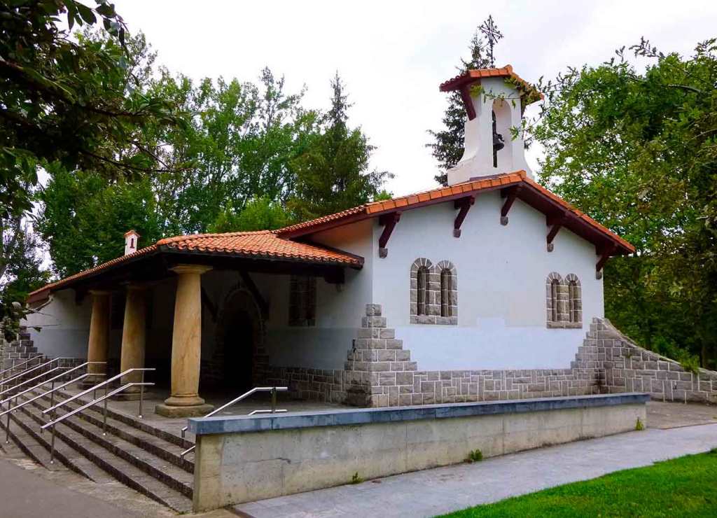 Esta construcción representa a la ermita de San Juan de Arriaga enclavada en el parque de Lakua, en Vitoria.