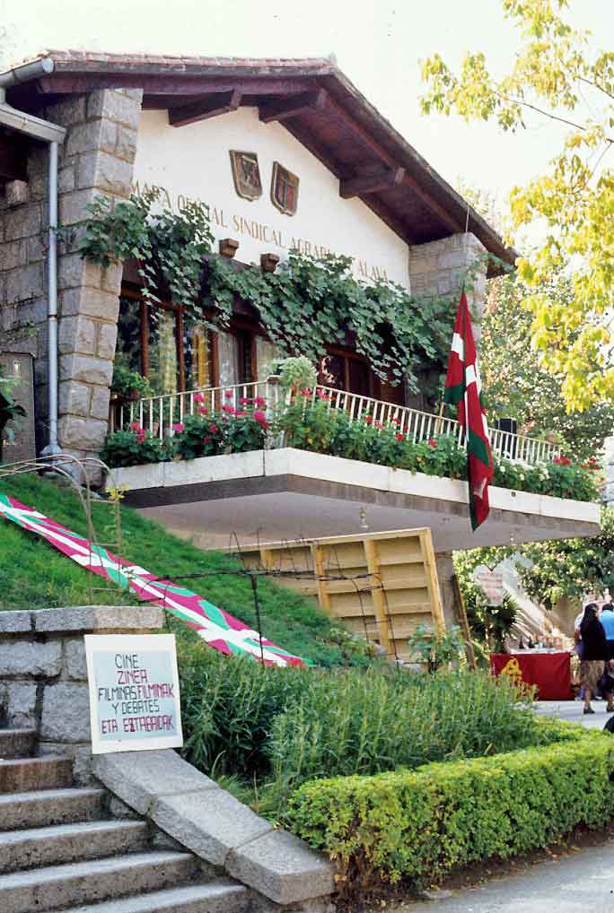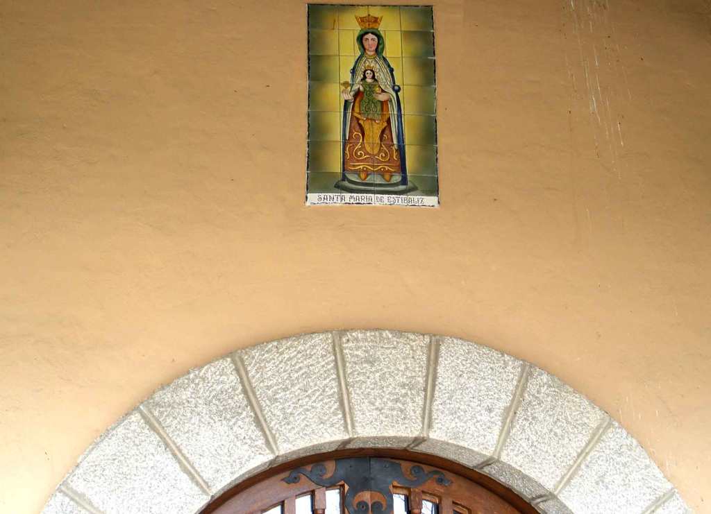 Interesante combinación de mirador en voladizo con porche cubierto. Sobre la entrada principal del pórtico se encuentra un mosaico con la imagen de Santa María de Estibaliz, patrona de Álava.