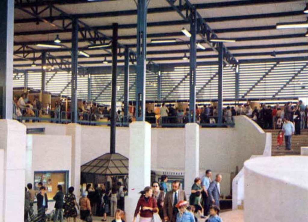 Como en un gran bazar, se situaban los diferentes stands bajo la gran cubierta, levemente inclinada, con un único resalto para entrada de luz.