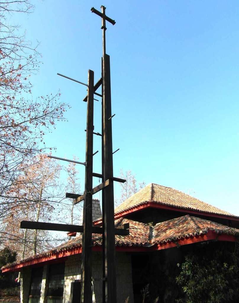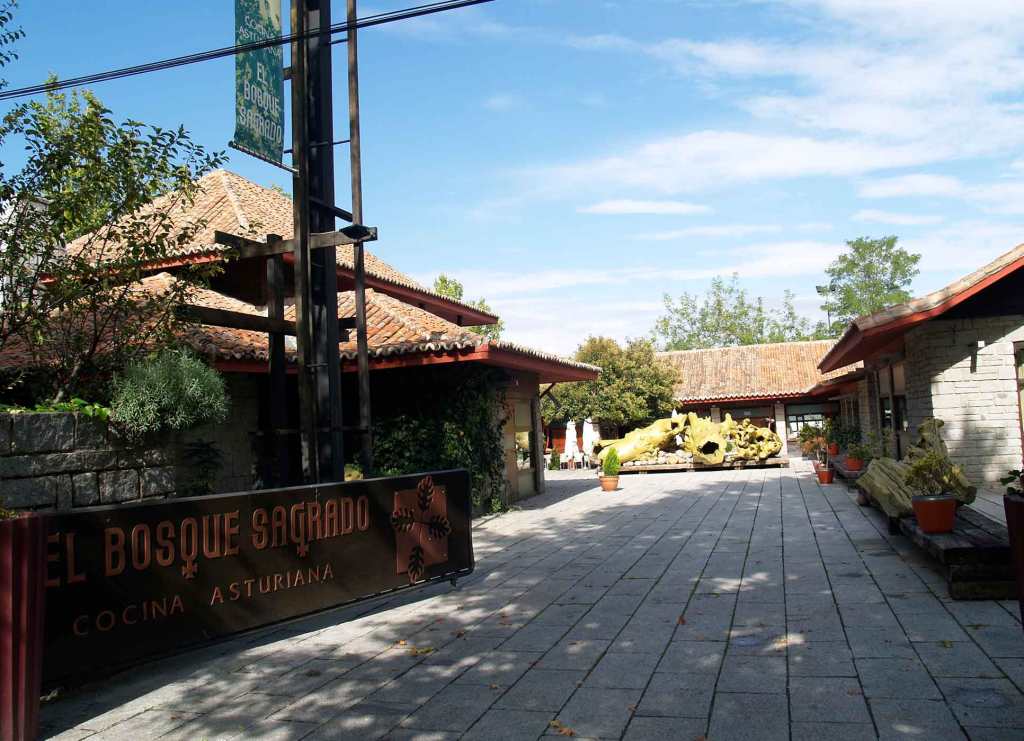 A la entrada del recinto nos da la bienvenida un mástil-escultura de forja coronado con la Cruz de la Victoria símbolo de Asturias, de inspiración moderna, cuyo original fue donada a la Catedral de San Salvador de Oviedo por el Rey Alfonso III y su esposa, la reina Jimena de Asturias, en el año 908.