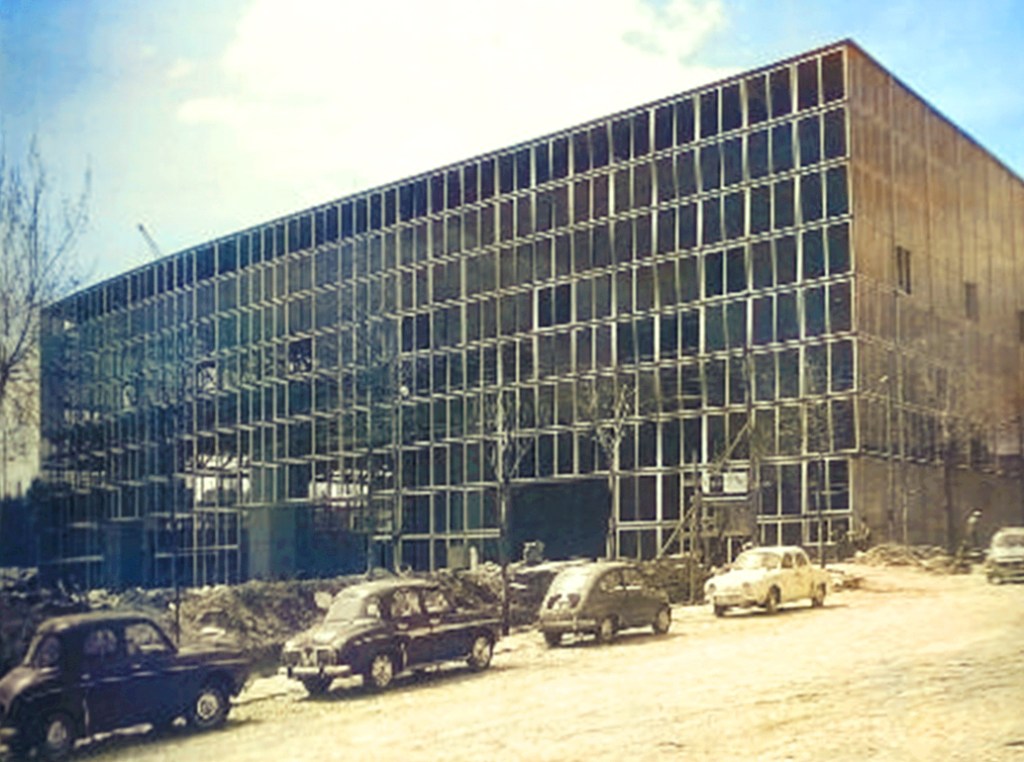 Al exterior la abstracta combinación de negro y rojo en vidrio y carpinterías, caracterizan a este edificio emblemático de nuestra ciudad. Edificio singular de la arquitectura madrileña. Constituye un hito dentro de la trama urbana. Con grandes posibilidades expositivas.