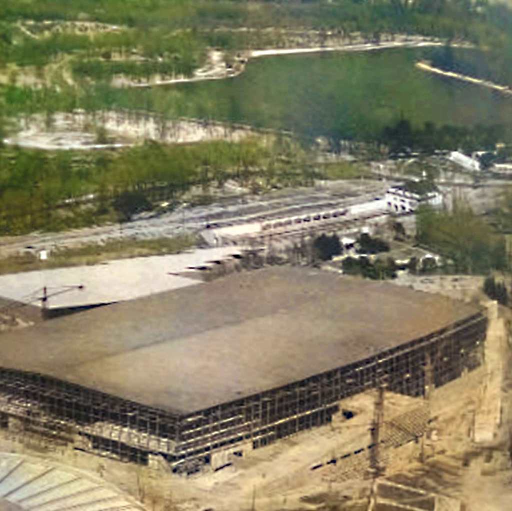 Se construye en el momento de mayor éxito de la Feria. Símbolo del desarrollo y la mecanización del sector agrario en aquel momento.