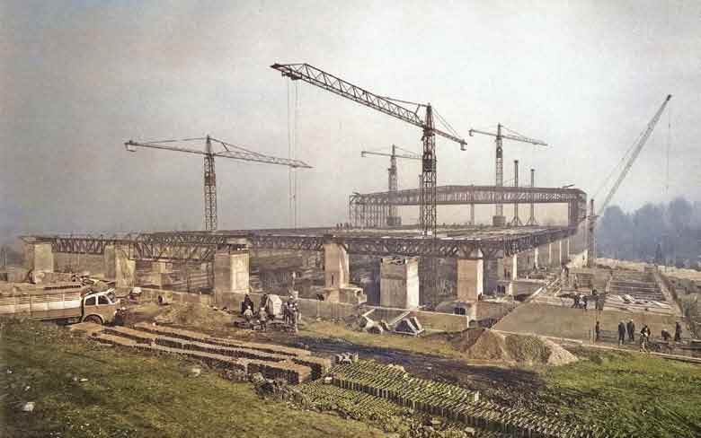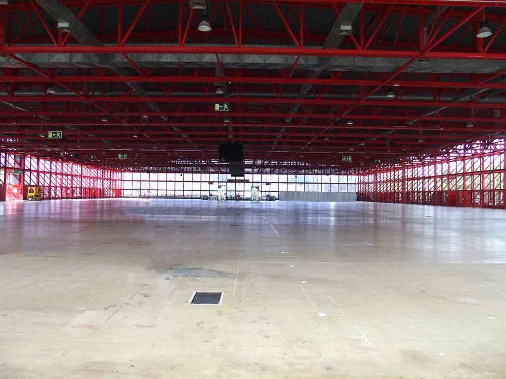 La solución constructiva proyectada combina una gran estructura de cerchas metálicas en cubierta apoyada en 12 pilas de hormigón que a su vez sostienen los distintos forjados de hormigón. Con este sistema se resolvió de forma magistral los factores de urgencia que condicionaron la construcción, así como, la necesidad de un gran espacio abierto de 130 x 80 m, lo suficientemente flexible, para permitir la exposición simultánea de maquinaria pesada de gran volumen y objetos delicados.
