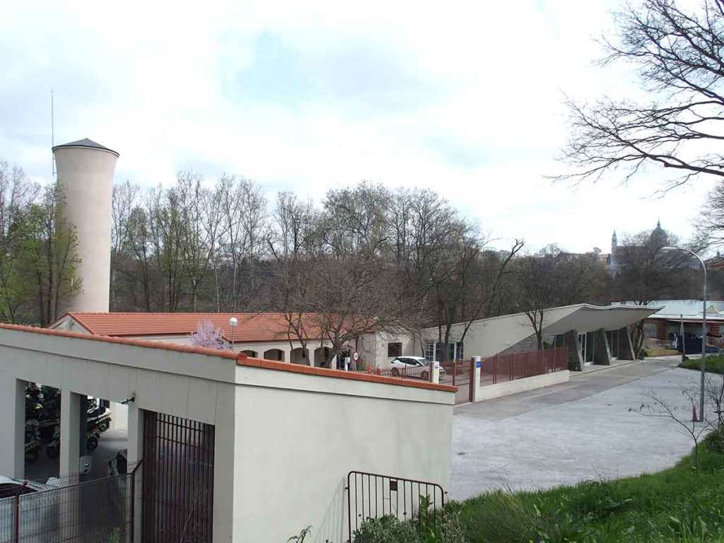 A la espalda de este pabellón estaban los restos de la primitiva Puerta de San Vicente cuyas piedras no fueron utilizadas para su reconstrucción en 1995.