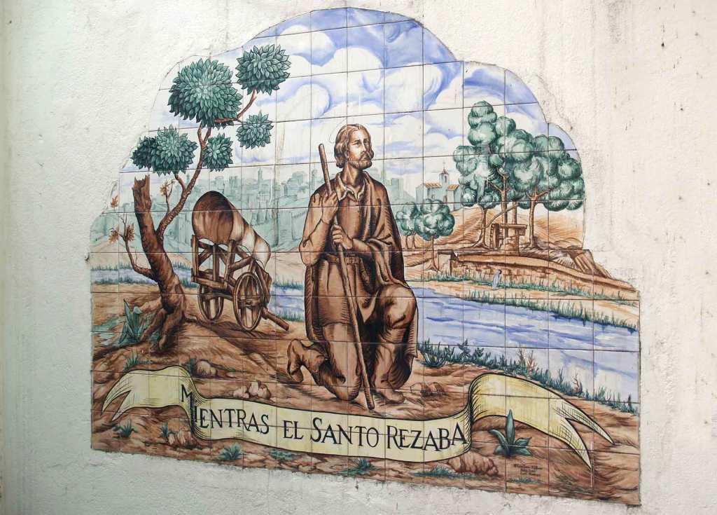 Una vez traspasada la reja y ya dentro del recinto existen en la pared cuatro mosaicos perfectamente conservados con los milagros de San Isidro Labrador patrón de Madrid, fueron realizados en el año 1970 en la Escuela de Cerámica de Madrid por Mª Luisa Torres, Matías Castro y M.J. Alonso.