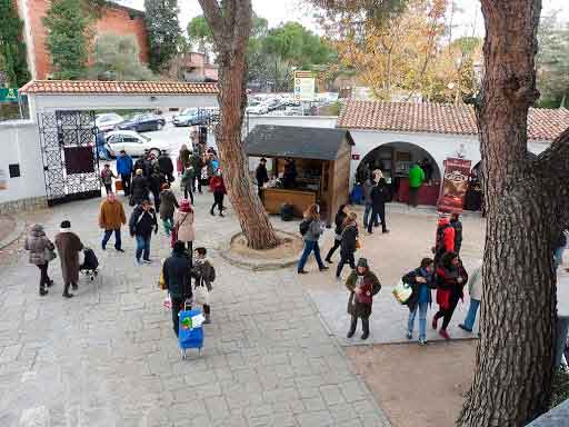 El edificio central está rodeado de un conjunto de arcadas donde en tiempos de feria se ponían los productos típicos de Madrid.
