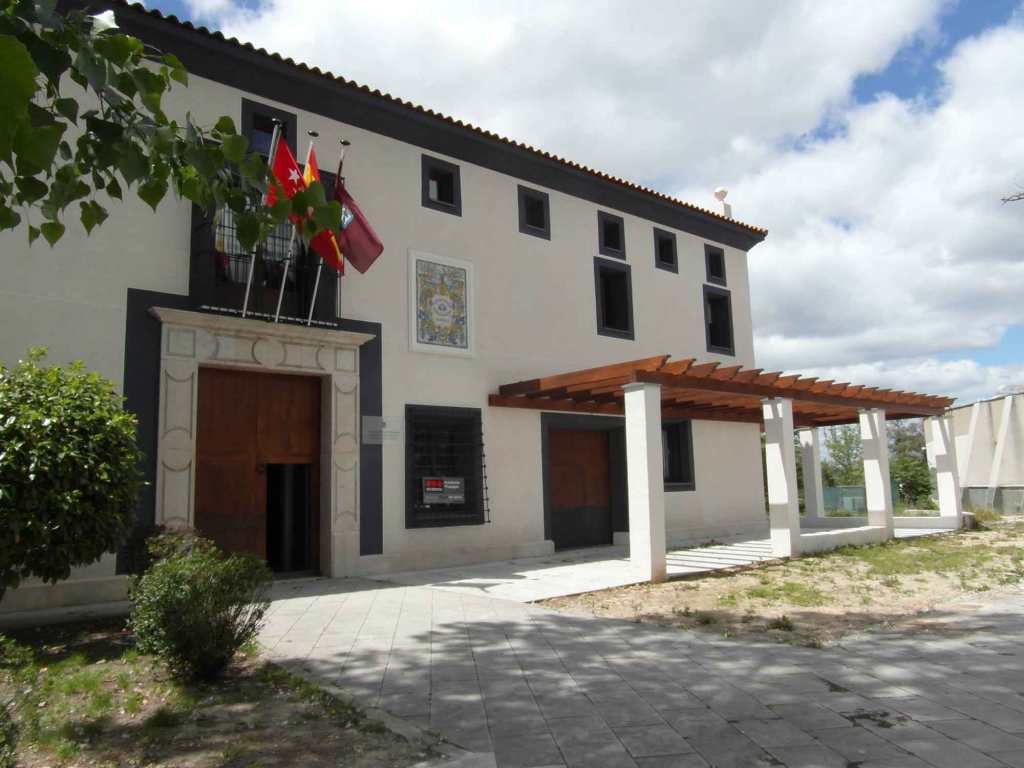 El cuerpo principal prismático con fachadas enfoscadas en blanco sobre zócalo de piedra de colmenar, ventanas con reja y una pérgola con emparado. Una pequeña torre con veleta remata la esquina con la Avenida Principal.