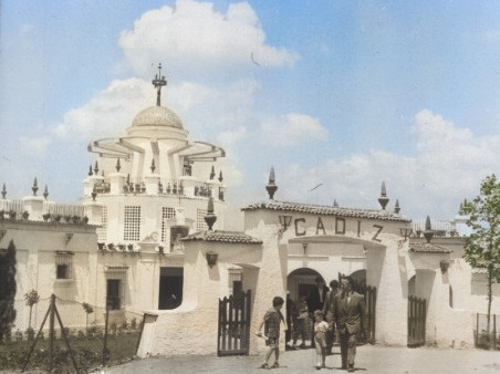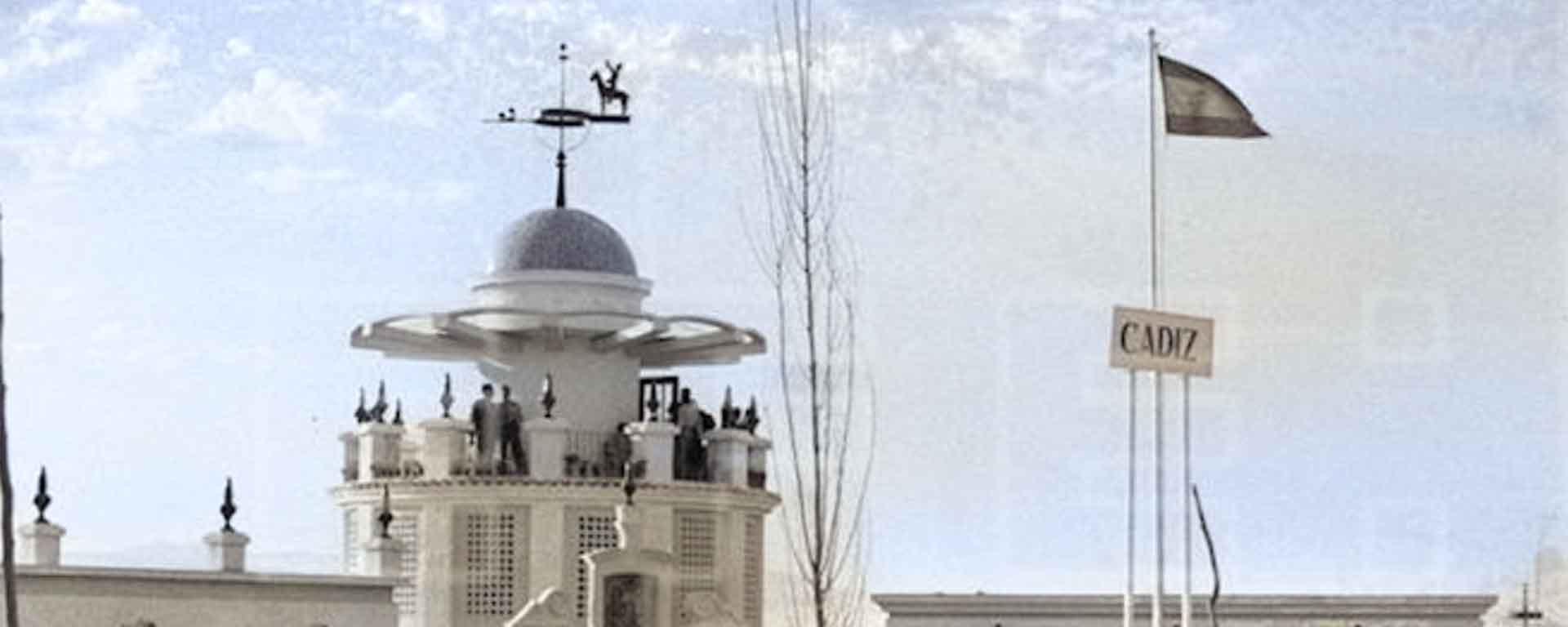 El Pabellón de Cádiz estaba entre el Pabellón de Murcia y el de Jaén frente al Pabellón de Canarias en la Calle Principal de las Provincias.
