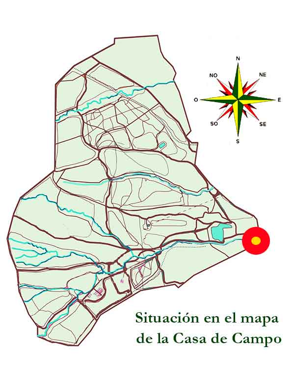 VER SITUACIÓN EN Google Maps UTM 438665.26 m E – 4474445.86 m N. Estaba dentro de la Barriada, un grupo de casas habitada por los trabajadores de la finca. El Almacén estaba sobre la tapia que daba al rio.