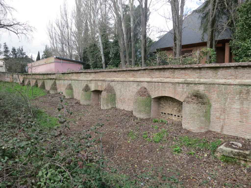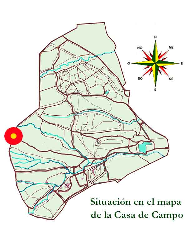 Estamos en el lugar más alto de la Casa de Campo con 690 metros de altitud y siguiendo la tapia hacia el norte podemos ver