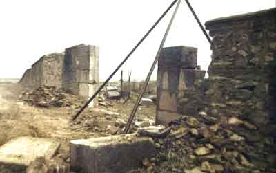 Restos esparcidos de la puerta con los que se monta el antiguo portillo en un tamaño más ancho.