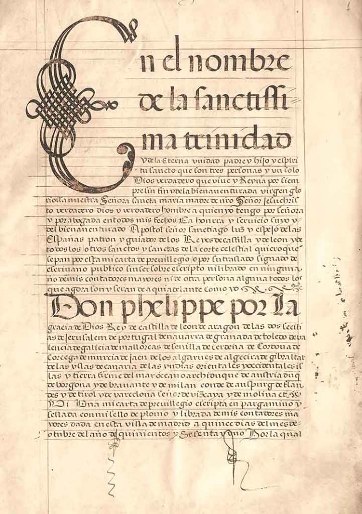 «…Di una mi carta de privilegio escrita en pergamino y sellada con mi sello de plomo y librada de mis contadores mayores dada en esta villa de Madrid a quince días del mes de octubre del año de quinientos y sesenta y uno…”