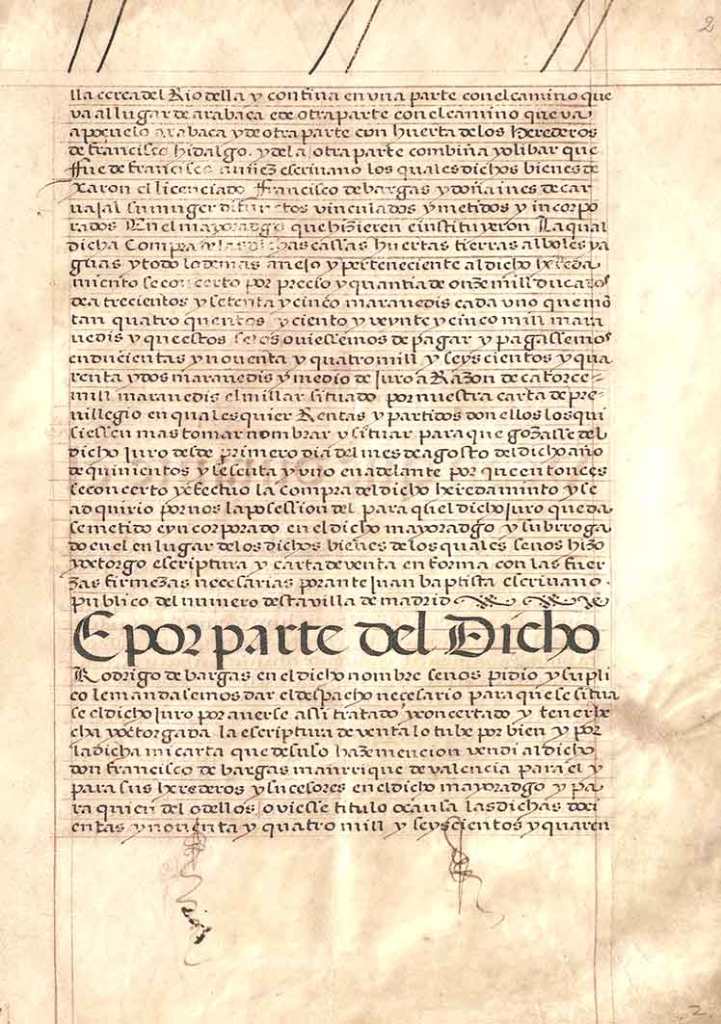 En 1592 los herederos del mayorazgo de los Vargas, renuevan la carta de privilegio que en 1561 les otorgó Felipe II. Se renueva porque se trata de un Juro por heredad, es decir unos derechos que se heredan y son renovados por alguna causa; por herencia, por actualizar algún concepto o corregir las cantidades contenidas en el documento etc.
