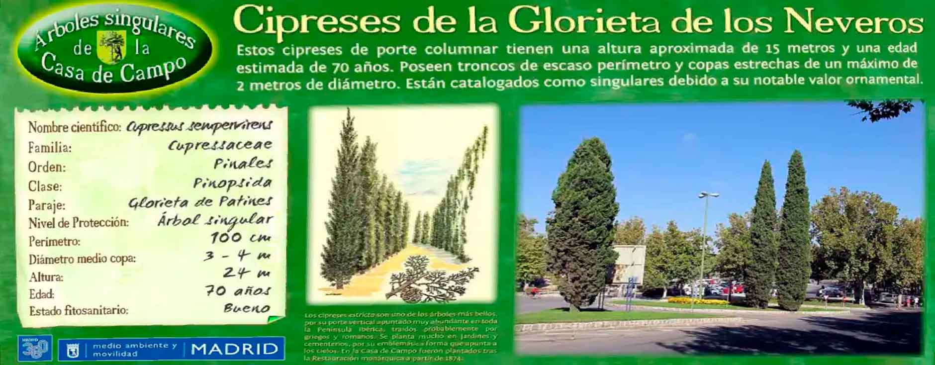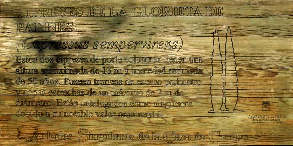 Antes, sin embargo queremos pedir a los responsables de la última impresión de carteles sobre estos árboles, que cuiden algo que es esencial; su nombre y el lugar donde se encuentran. Sin ese cuidado se colabora en desinformar a los que leen estos carteles y todos retrocedemos en la recuperación de la verdadera toponimia de la Casa de Campo.