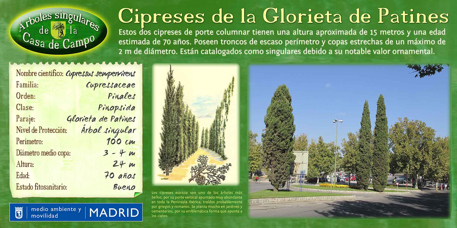 Otra pregunta sobre el cartel anterior: ¿son 2 o 3 los cipreses? El antiguo cartel dejaba claro que eran 2 pero el actual deja la puerta abierta a la especulación.