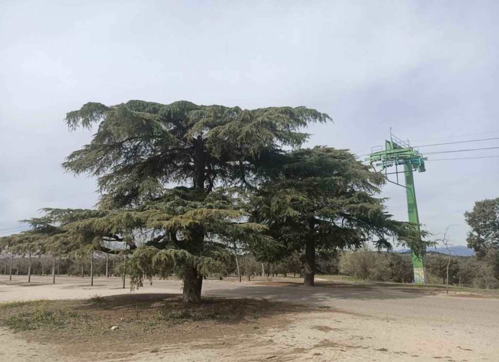 Los cedros del Líbano son la aristocracia de las especies arbóreas, por su gran porte y belleza. La plaza del Picadero, usada para actividades ecuestres y paradas militares. Estaba conformada por círculo de cuarenta cedros de los que en la actualidad sobreviven escasamente diez ejemplares. Estos árboles estuvieron la mayor parte de la Guerra Civil próximos a las líneas de frente y padecieron bombardeos destinados a posiciones cercanas. El ejemplar de la foto se muestra tronchado y con múltiples cicatrices en su corteza.