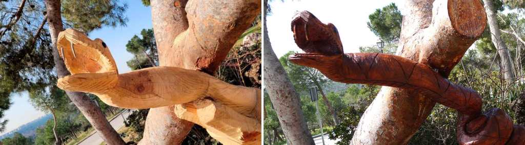Creemos que el proyecto de la Glorieta de los Neveros donde se pretende mostrar los símbolos de Madrid, no es buena idea, una cosa es tallar un tronco y aprovechando su forma darle un valor de escultura rústica, y otra, hacer una obra concreta para un lugar que posee su propia historia.