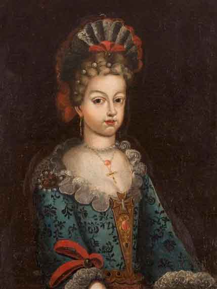 María Luisa llega a España siendo una niña de doce años, al año siguiente de su boda tiene que reinar debido a la Guerra de Sucesión 1701-1713 por la que se disputaban la corona española el Rey Felipe V y el Archiduque Carlos de Austria.