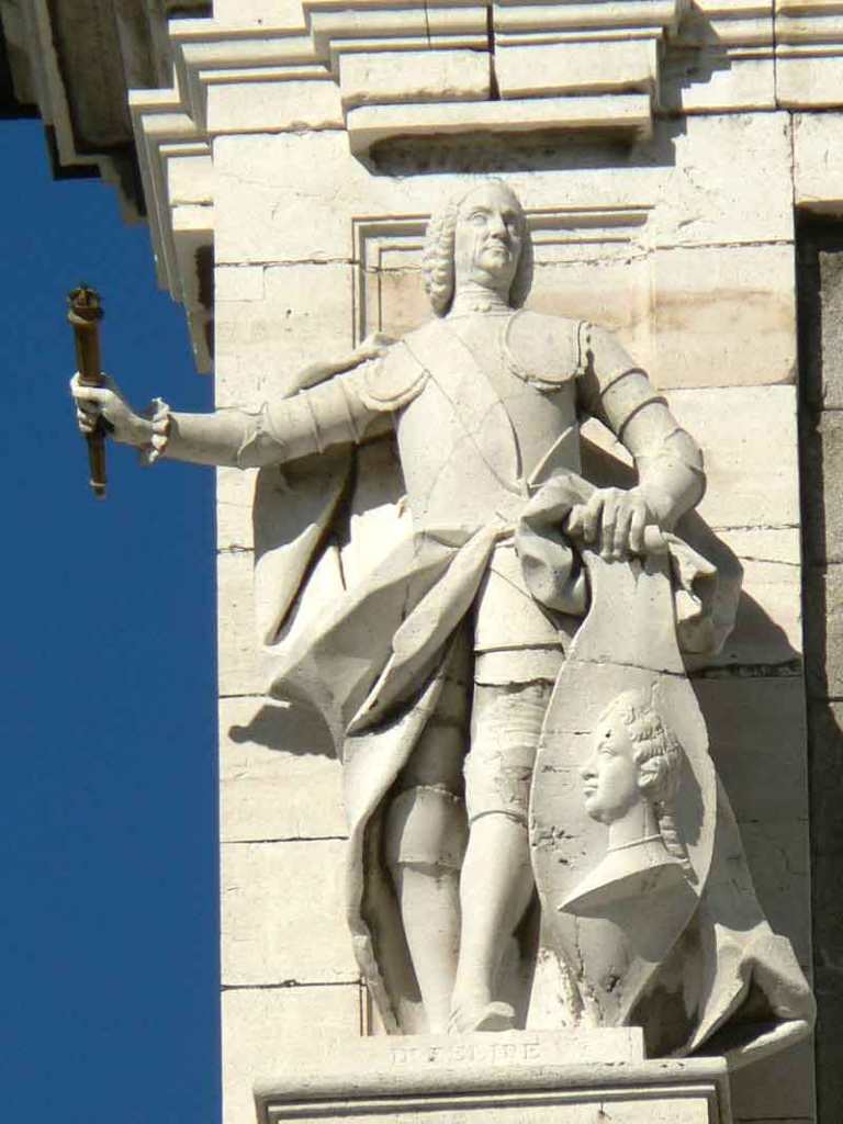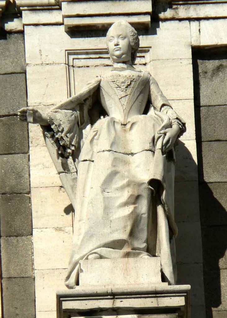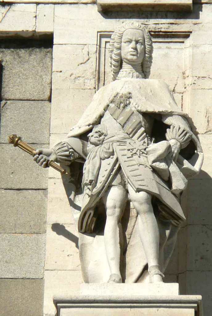Si algún día visitáis el Palacio Real, elevar la vista en el Patio de Armas hacia la fachada principal y a los lados del reloj veréis cuatro estatuas; recordar lo que vamos a contaros.