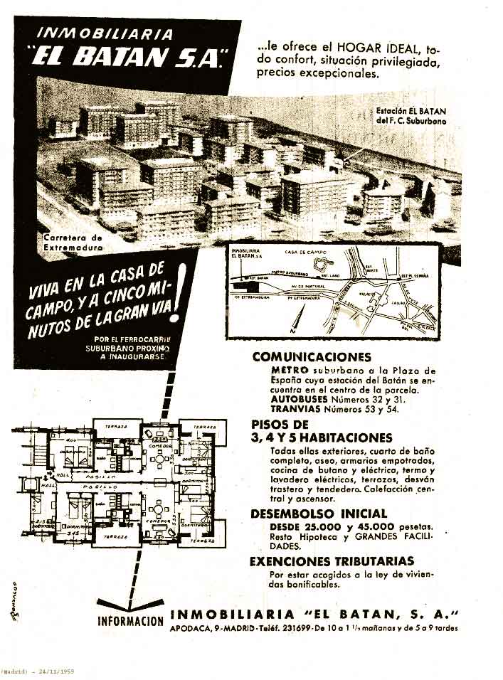 Después del escaso éxito ya que ninguno ve negocio edificar pisos en esta zona, se tomarán otras medidas. Además, ya se están edificando viviendas sociales por parte del Consejo Nacional de la Vivienda acogidas a la Ley de Viviendas de Renta Limitada. Hay que reseñar que el consejero de esta entidad es Ramiro Matarranz Cedillo que también es presidente de la Mutualidad Laboral del Comercio que más tarde construirá en la zona de El Batán dos colonias; las del Montepío I y II.