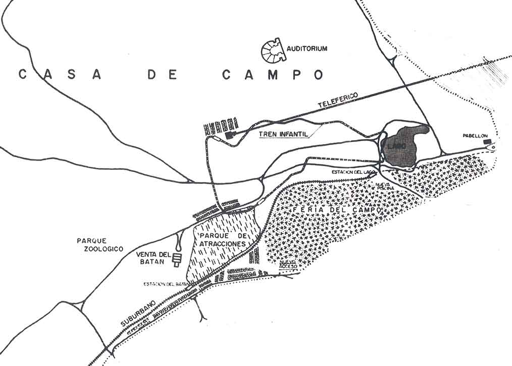 En 1967 Antonio Linares Sánchez presenta un trabajo, nada original, titulado: El futuro de la Casa de Campo, trabajo que es una modernización de los trabajos de Álvarez Naya y José de Lorite de 1932. Trabajos similares en su concepción de que el campo y la naturaleza son espacios desaprovechados. Los dos proyectos pretenden un aprovechamiento de los terrenos de la Casa de Campo con pintorescos proyectos. Desde una plaza de toros, un parque de atracciones, un zoológico, más piscinas, un tren etc… Y mientras los primeros no llevaron a cabo sus pretensiones, Antonio Linares sí que las lleva a buen término en casi todos sus apartados.