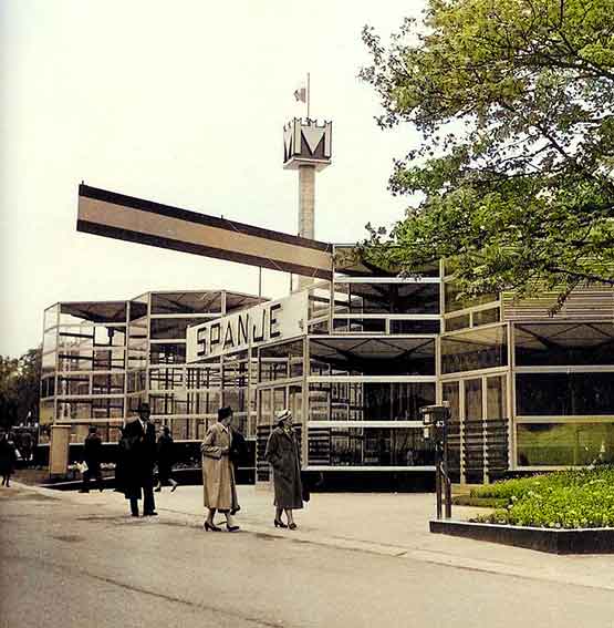 El pabellón, desmontable, fue primer premio de Arquitectura en la Exposición Universal de Bruselas en el año 1958.