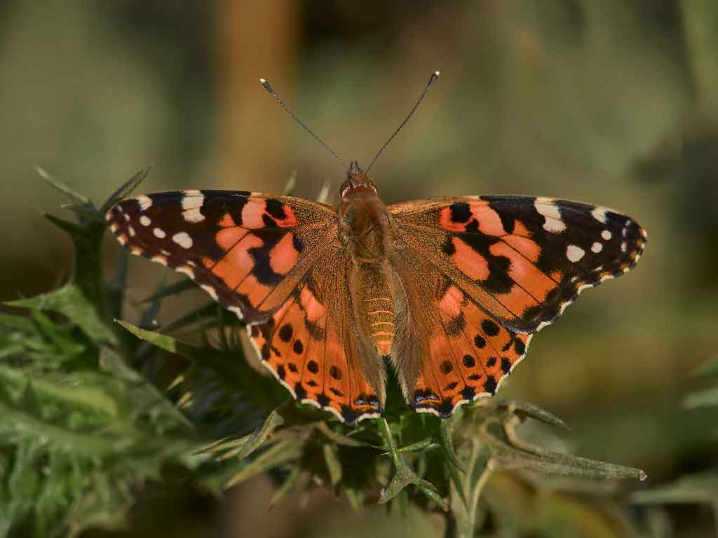 Planta nutricia: compuestas como Carduus crispas (cardo borriquero), Onopordum acanthium (alcachofa borriquera), Arctium lappa (bardana), A. minus (lampazo menor), A. tomentosum, Achillaea millefolium (mil hojas); malváceas como Malva sylvestris (malva común), M. alcea (malvavisco salvaje); urticáceas como Urtica dioica (ortiga mayor), U. urens (ortiga menor) y boragináceas, leguminosas y solanáceas.