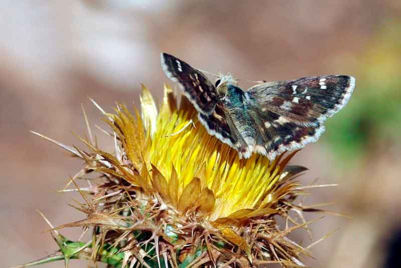 Carcharodus boeticus (Rambur, 1839) Vuela de mayo a junio (1ª generación) y julio-octubre (2ª generación); común.
