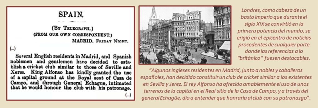 “Algunos ingleses residentes en Madrid, junto a nobles y caballeros españoles, han decidido constituir un club de cricket similar a los existentes en Sevilla y Jerez. El rey Alfonso ha ofrecido amablemente el uso de unos terrenos de la capital en el Real sitio de la Casa de Campo, y a través del general Echagüe, dio a entender que honraría al club con su patronazgo”.